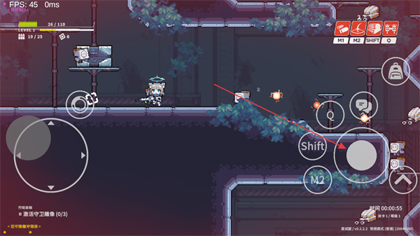 3、使用右侧攻击按键,精准射击敌人,同时利用Shift键等技能辅助战斗。