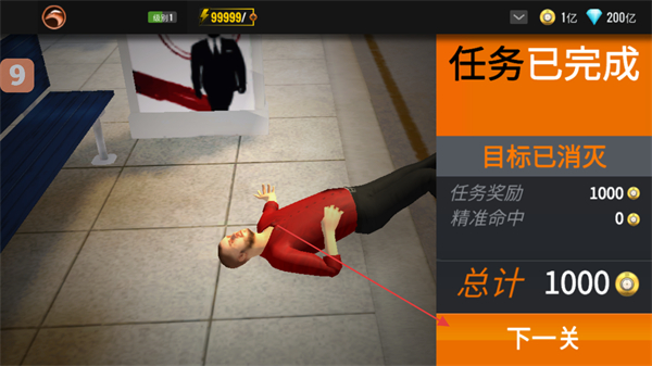 4、完成任务后点击下一关,继续挑战新的狙击任务。