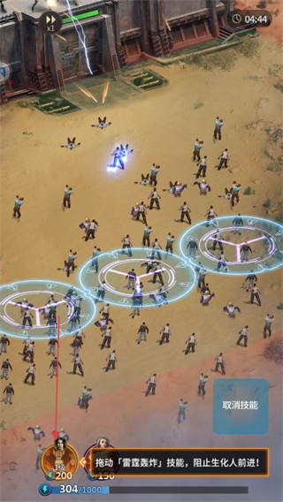 2、面对大量生化人进攻,利用技能如闪电攻击进行防御,阻止其靠近建筑。