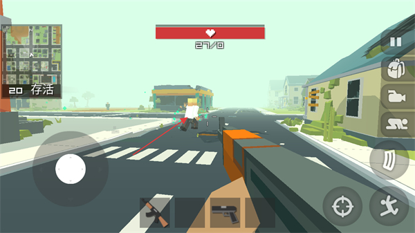 地图中散落各类武器,从冲锋枪到火箭筒一应俱全,还有药品、手雷等道具,遭遇敌人时,通过右侧按键瞄准射击,自动拾取功能简化物资收集流程。