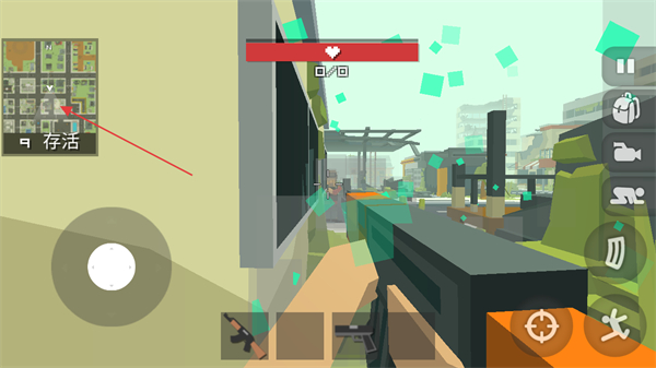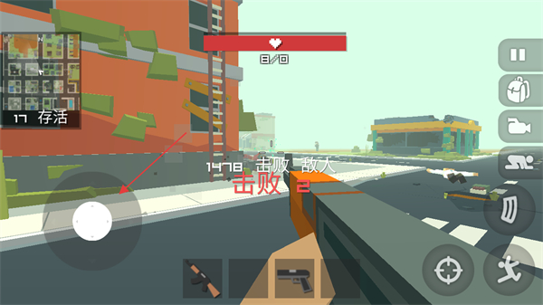 2、利用左侧虚拟摇杆移动,瞄准并击败其他敌人,减少存活人数。