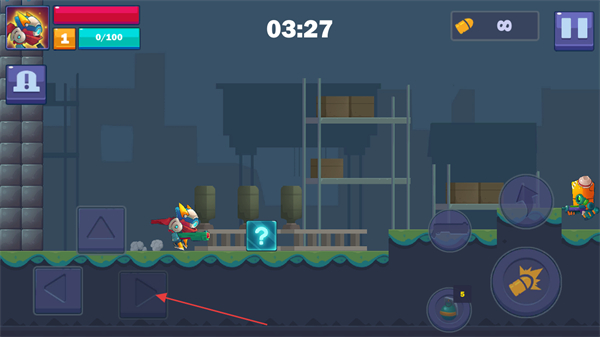 1、进入游戏,留意屏幕上方的倒计时和自身的生命值、能量值,通过左下方方向键操控角色移动。