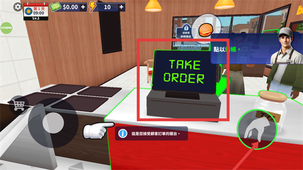 3、点击【TAKE-ORDER】的柜台,接受顾客的订单,记录需求,为制作汉堡做准备。