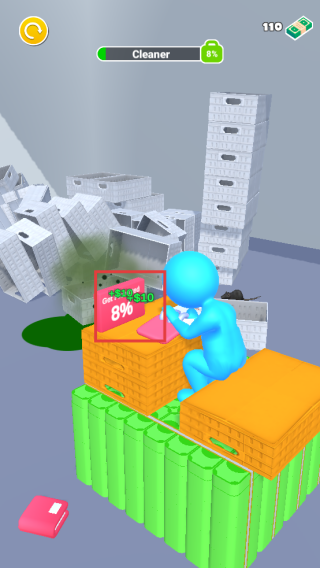 2、持续点击清理区域,提升清理进度,积累收益,让下方的钞票不断增长。