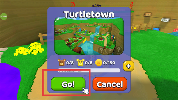 2、点击绿色【Go!】按钮,进入【Turtletown】区域,开启收集熊、金币的冒险之旅。
