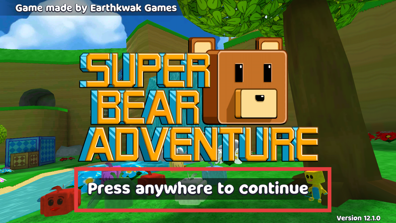 1、游戏启动时,点击屏幕任意位置,即可进入超级熊历险记游戏。