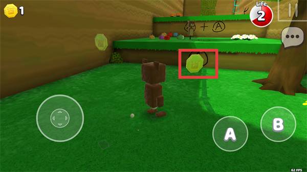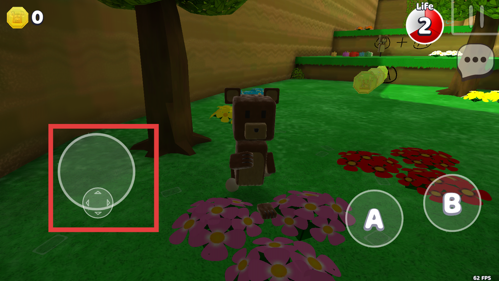 3、游戏里,用左侧方向按钮控制超级熊移动,配合【A】【B】键操作。