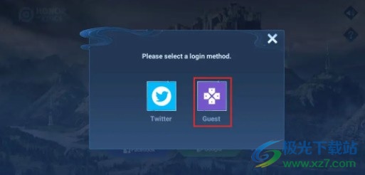 3、进入游戏后按照提示更新游戏,更新完成会让你重进游戏,再次进入游戏,加载完游戏会提示让你登录,点击“三个点”选择游客(Guest)登录;
