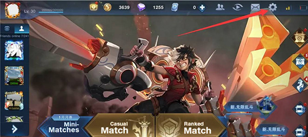 1、首先需要把正常的进入游戏,在游戏大厅的首页的右上角可以看到【设置】的按钮;