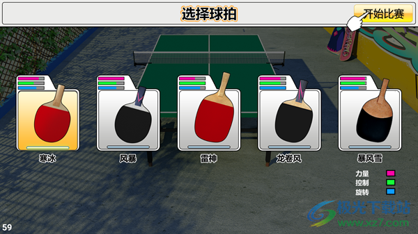 4、选择自己顺手的球拍,点击右上角“开始游戏”。
