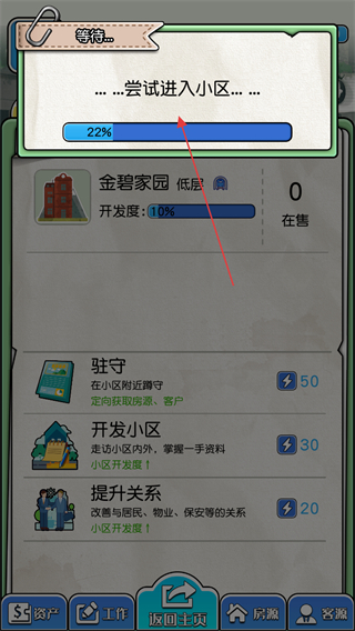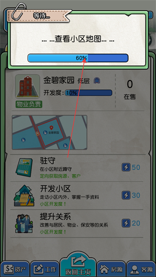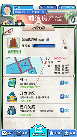 4、后续可进行驻守、开发小区、提升关系等工作,获取房源和客户资源,开展房产经纪业务,积累业绩和财富。