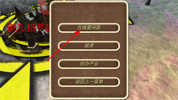 4、进入城内界面后,点击在城里闲逛选项,这是触发城内交互的基础操作,闲逛可获取资源、情报或触发随机事件,助力游戏发展。