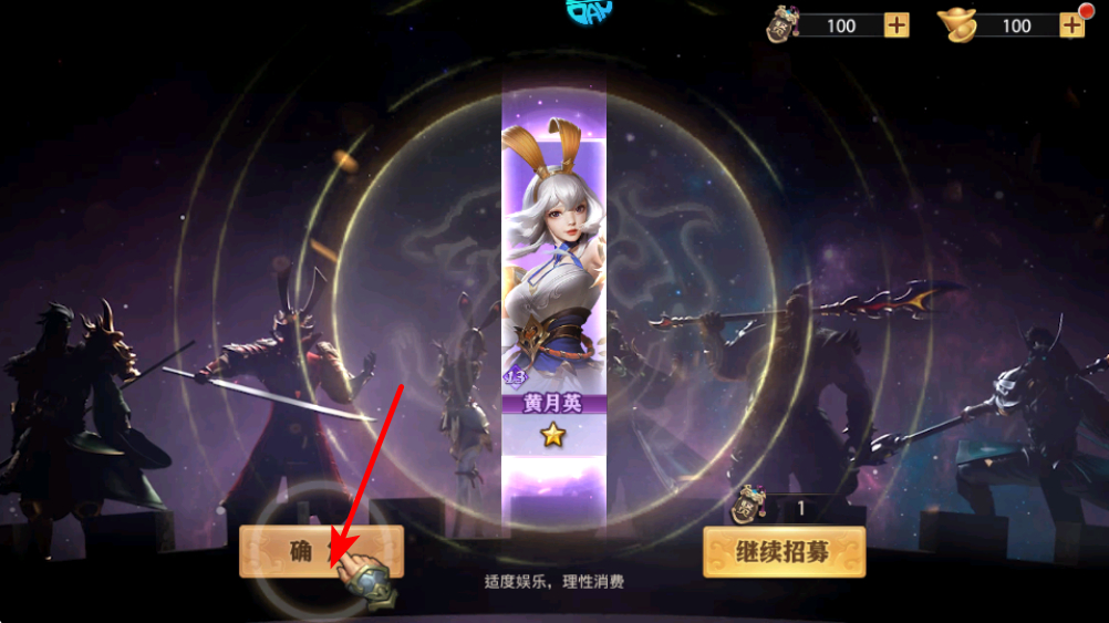 1、招募到武将后,点击界面中的确定按钮,这是完成招募流程的关键步骤,确认后武将将加入阵容,可用于后续军队组建与战斗。