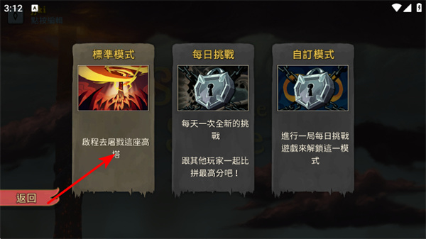 1、进入游戏模式选择界面后,点击标准模式选项,这是开启主线冒险的关键操作,需选择该模式开启攀登高塔的征程。