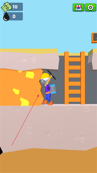 1、操控角色用镐头开采黄色矿石,积累矿石和金钱,提升开采能力。
