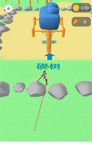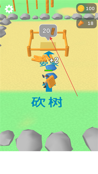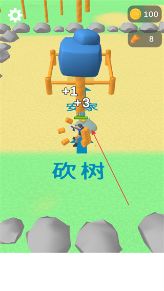 1、操控角色砍树,获取木材如每次砍树可获得+1、+2、+3等木材,积累木材数量。