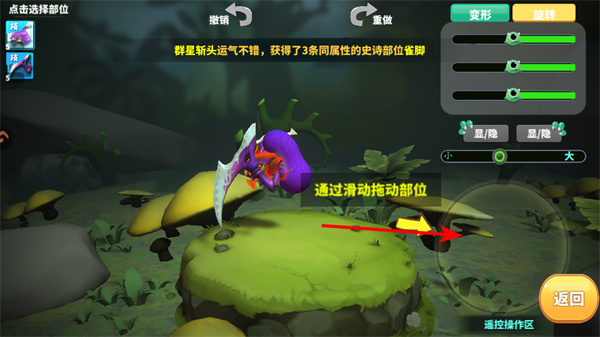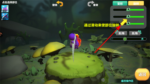 2、点击滑动旋转条来使部位旋转,这是精细调整生物部位的核心操作,旋转后可让部位角度更适配战斗需求,增强攻击或防御效果。