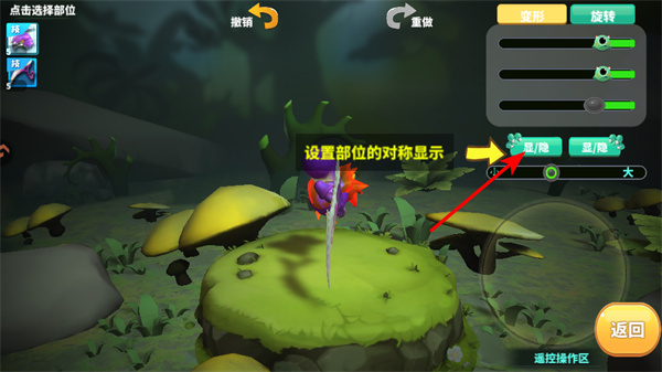 3、设置部位的对称显示时,点显/隐按钮,这是调整生物外观对称性的关键步骤,操作后可让生物部位对称显示,提升整体造型合理性。