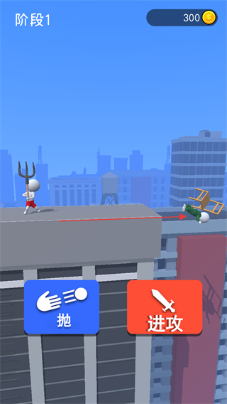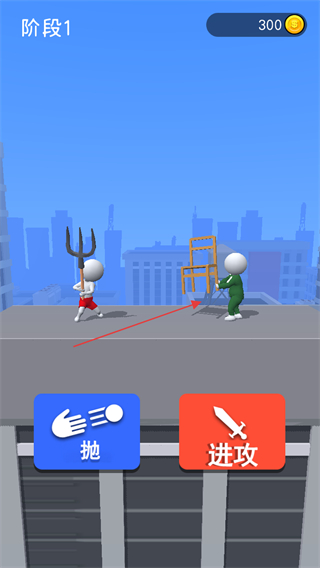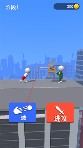 3、点击抛按钮,使用道具攻击敌方,破坏其武器。