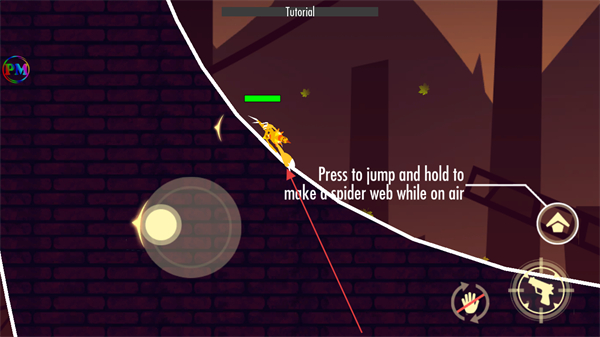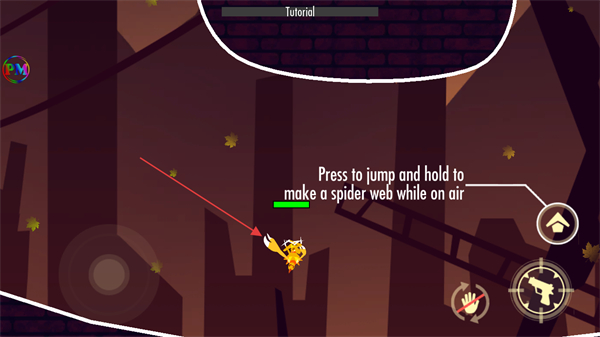 1、点击跳跃按钮并按住,可在空中制作蜘蛛网,帮助螃蟹移动和攀爬。