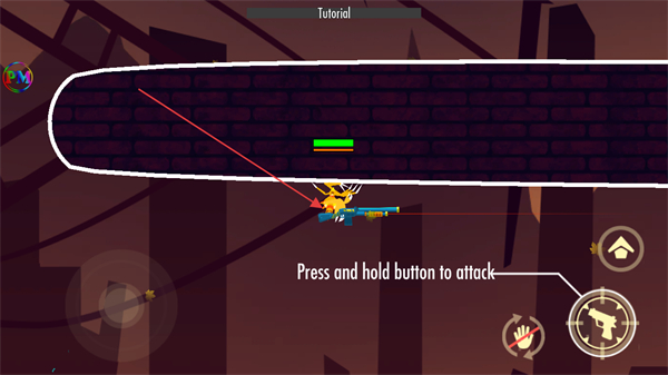 3、按住攻击按钮,使用武器攻击敌人,消灭目标。