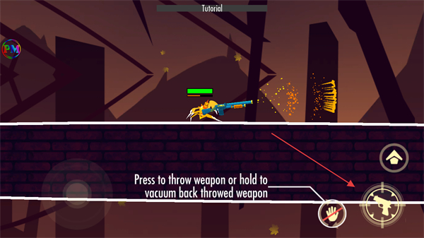 4、可点击投掷武器按钮投掷武器,或按住回收投掷的武器,灵活运用武器战斗,推进游戏进程。