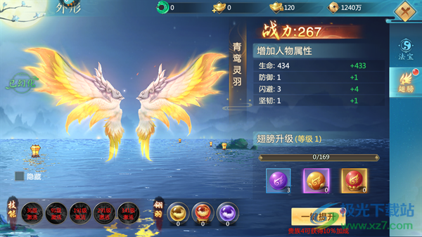 1、翅膀,翅膀可以全面提高玩家的基本属性,随着不断提高星级还会解锁更多实用技能,帮助玩家在战斗中更加得心应手。