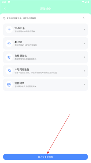3、进入添加设备的页面内,拉到底下点击输入设备ID添加。
