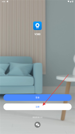 1、启动v380的应用APP,进入时点击下方注册的按钮。