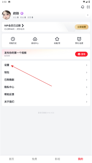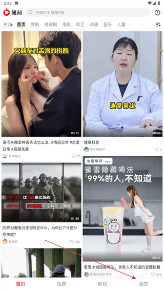 1、启动爱奇艺随刻的APP,在首页右下点击我的按钮。