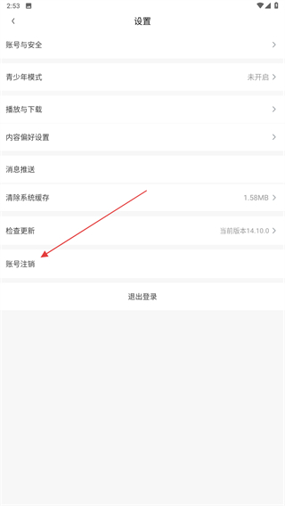 3、进入设置的界面内,点击下方账号注销的功能按钮。