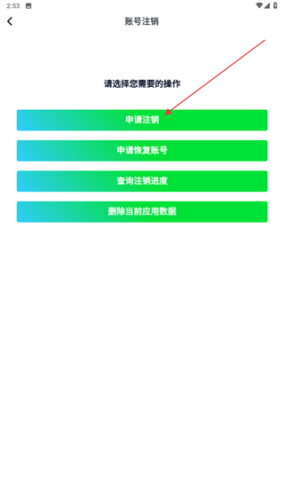 4、进入账号注销的页面内,选择并点击申请注销即可。