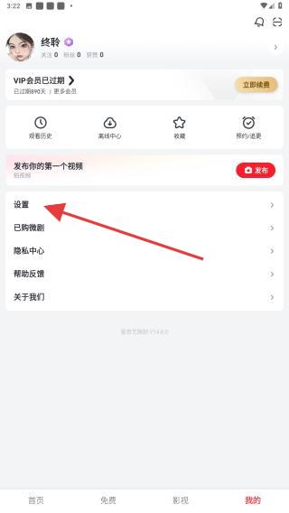 2、进入个人中心的页面内,用户需找到并点击设置按钮。