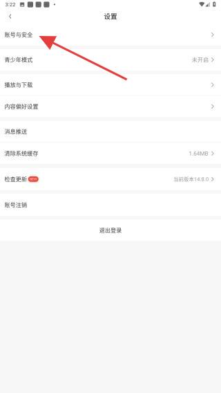 3、进入设置界面后,点击账号与安全的功能按钮。