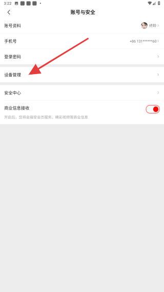 4、在账号与安全的页面中,点击设备管理,即可查看账号登录过的设备信息。