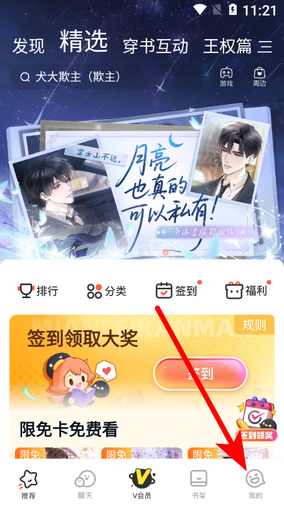 2、进入到精选页面的内容中,可以先进行签到来领取签到奖励,也可以点击想看的漫画进行浏览阅读。