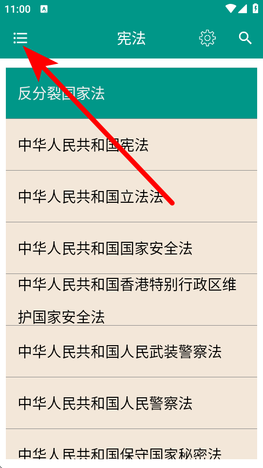 1、在法律法规APP主页面,点击左上角菜单图标,展开法律分类列表。