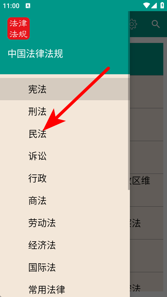 2、在法律分类列表中,点击民法选项,进入民法分类页面。