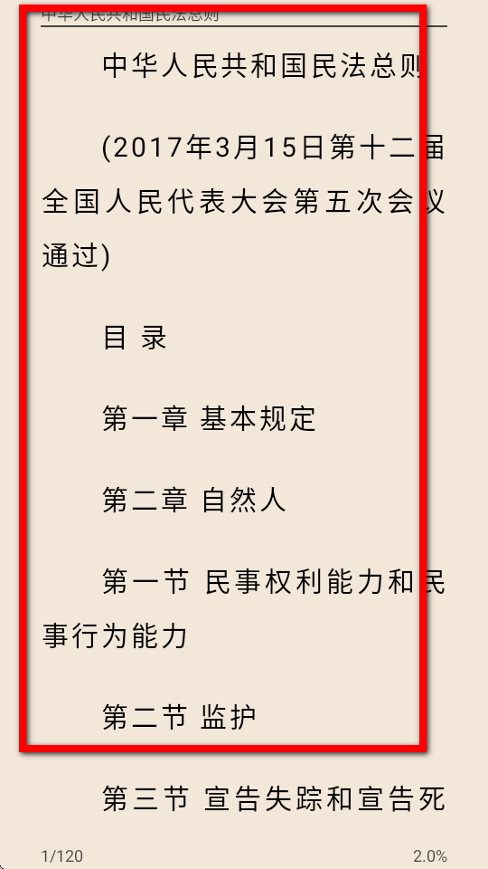 4、即可查看民法内容,还可选择自己想了解的内容。