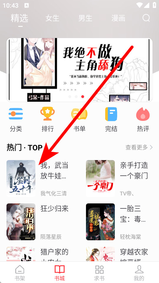 2、在书城界面,点击想要听的小说,如我,武当放牛娃,进入小说详情页面。