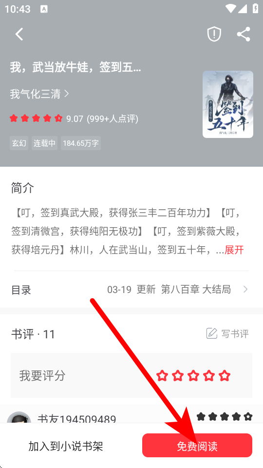 3、在小说详情页面,点击免费阅读按钮,进入小说阅读界面。