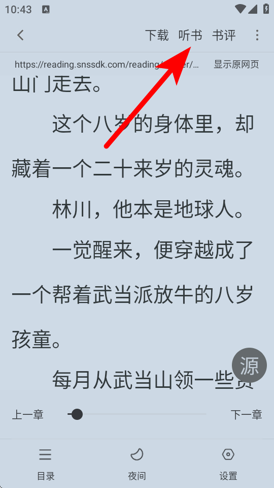 4、在小说阅读界面,点击上方听书选项,即可开始听书操作。