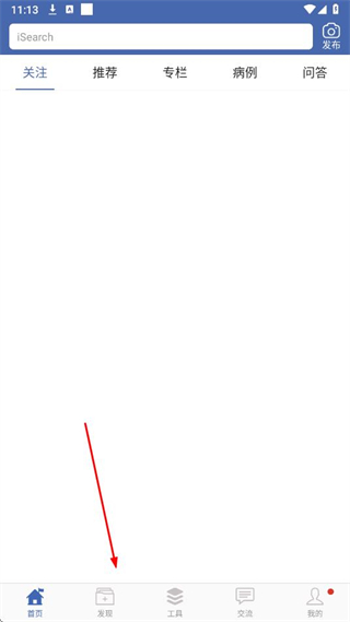 1、打开轻盈医学APP,点击导航栏中的发现。