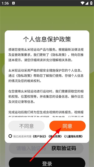 1、在个人信息保护政策弹窗中,点击同意,进入登录页面。