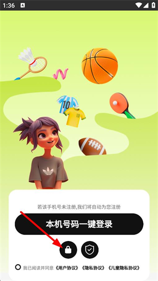 2、随后可以在登录页面,点击密码登录图标,进入账号密码登录页面。