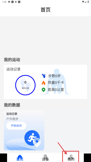 1、打开运动健康应用,点击底部我的选项,进入个人中心页面。