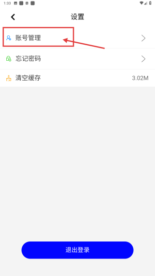 3、在设置页面,点击账号管理选项,进入账号管理页面。