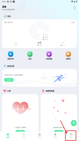 1、打开健康类应用,点击底部我的选项,进入个人中心页面。