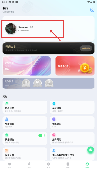 2、在个人中心页面,点击个人头像区域,进入账号页面。