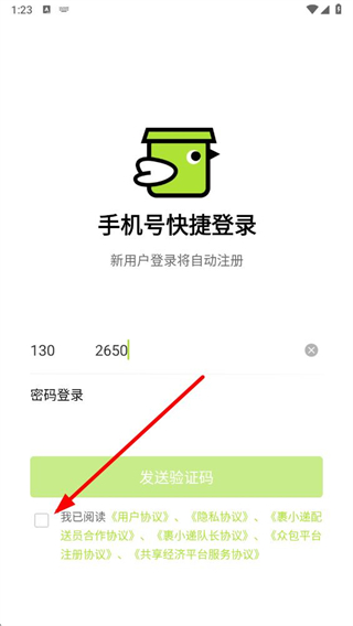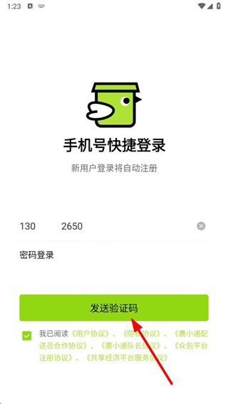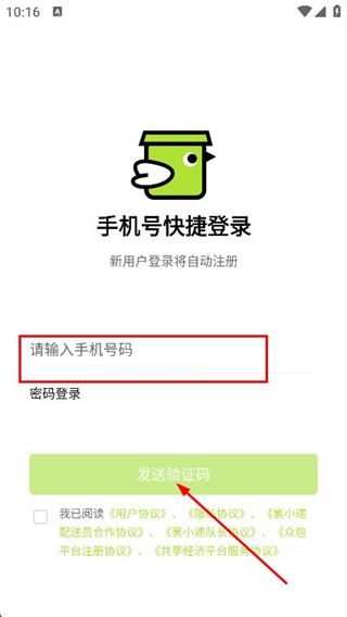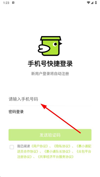 2、进入登录页面,输入手机号码,点击发送验证码按钮。